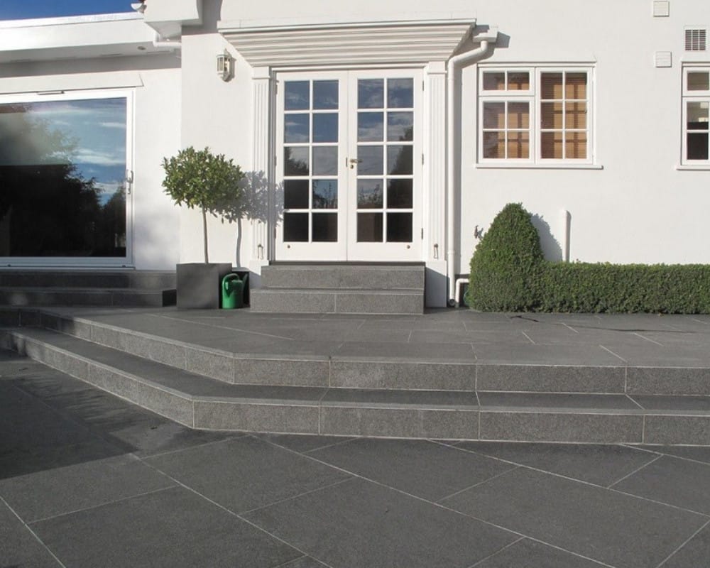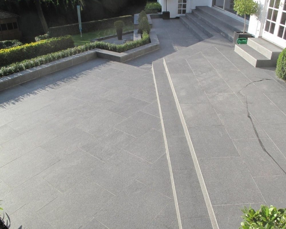 Elevate your design with the bold elegance of Raven Black Granite from HunterPavers. Its deep black shade and polished finish make it a perfect choice for luxurious interiors and durable outdoor spaces.